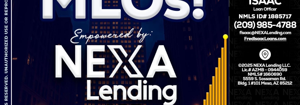 Hi, my name is Fred Isaac. I’m a Loan Officer with NEXA Mortgage LLC., offering personalized mortgage solutions, fast customized quotes, great rates and service with integrity.