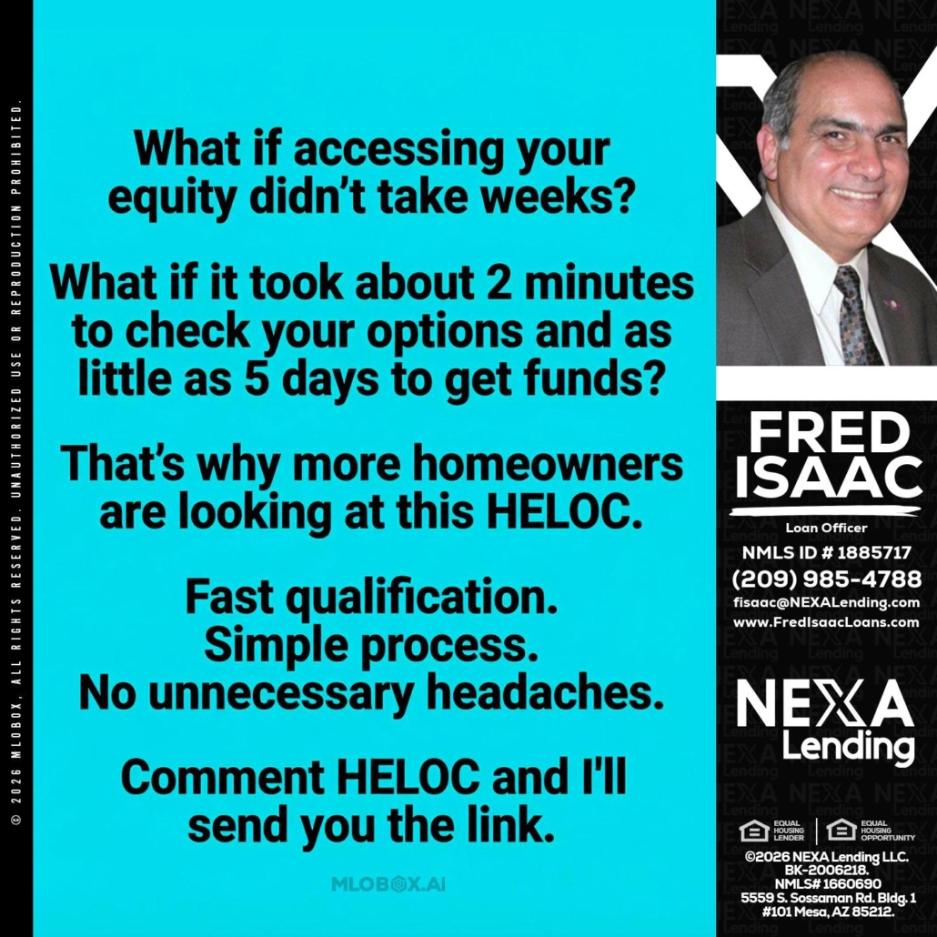Hi, my name is Fred Isaac. I’m a Loan Officer with NEXA Lending LLC., offering personalized mortgage solutions, fast customized quotes, great rates and service with integrity.